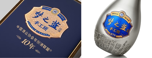夢之藍手工班是首家獲得“中國酒業(yè)協(xié)會”授權(quán)、由第三方認證機構(gòu)“方圓標志認證集團有限公司”權(quán)威認證的中國高端年份白酒。其中,夢之藍手工班(10年)延續(xù)了手工班系列的經(jīng)典風格,瓶身選用青槍色為主體色調(diào),展現(xiàn)產(chǎn)品渾厚內(nèi)斂的品質(zhì)內(nèi)涵,寓意手工釀造的時間積淀與工藝傳承。外盒正面延續(xù)經(jīng)典活字印刷元素,展現(xiàn)手工之美;局部細節(jié)精致打造郵票造型,體現(xiàn)產(chǎn)品珍貴紀念感;側(cè)面用木紋材質(zhì)年輪交疊中時光流轉(zhuǎn),呼應(yīng)老酒老窖的年份賣點。
