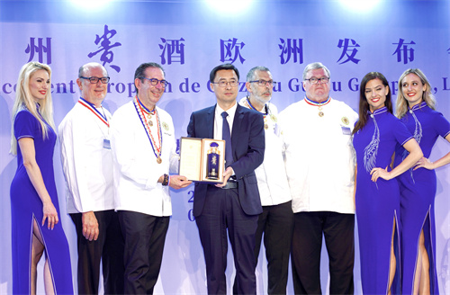 活動伊始,法國前國務秘書Frédéric LEFEBVRE和法國華人華僑會主席蔡君柱為對洋河新品上市表示祝賀,并為本次上市啟動晚宴的成功舉辦送上祝福。